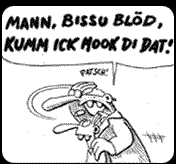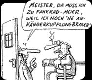 Zudem hatte Andi damit begonnen, kunstvoll mit Schweißgerät und Metall zu hantieren, und seinem großen Bruder folgend, selbstständige Modifikationen an seinen fahrbarenden Untersätzen vorzunehmen. Das brachte ihn schließlich in die Lage, sich in der Abgeschiedenheit einer Jugendarrestanstalt gründlich und ohne Störungen auf seine bevorstehende Gesellenprüfung vorzubereiten, die er dann auch anstandslos bewältigte. Der Einfallsreichtum der Brösel-Brüder kannte keine Grenzen, die Schweißerflamme keine Gnade und die Polizei nicht die Beweggründe der Brüder. In Folge mußte sich Brösel immer wieder mit TüV-Bediensteten und Ordnungshütern herumplagen und das in Zeiten, in denen man als Motorradfahrer ohnehin besonderen Gängeleien und Repressalien der Staatsdiener ausgesetzt war. Zugegeben, die Auflösungserscheinungen, die manche Vehikel Brösels an den Tag legten, trugen auch nicht gerade zur Nachsicht einiger gestrenger Beamten, die diesem “Rocker” auflauerten, bei. Die Tatsache, dass Brösels Motorräder gerne ihr Gebiet markierten, indem sie ihm buchstäblich unter dem Hintern zerbröselten und vielerlei Teile während der Fahrt von sich warfen, bescherte Brösel nicht nur einen Berg von Mängelberichten, die an Zahl ausgereicht hätten, eine Turnhalle zu tapezieren, sondern auch den Namen, unter dem er heute weithin bekannt ist, eben BRÖSEL. Dadurch ging logischerweise ein großer Teil der Arbeitslosenknete für Bußgelder drauf. (Nachzulesen in: "WERNER - ODER WAS?" in der Episode ”HURRA WIR VERBLÖDEN, FÜR UNS BEZAHLT DER STAAT!”) |